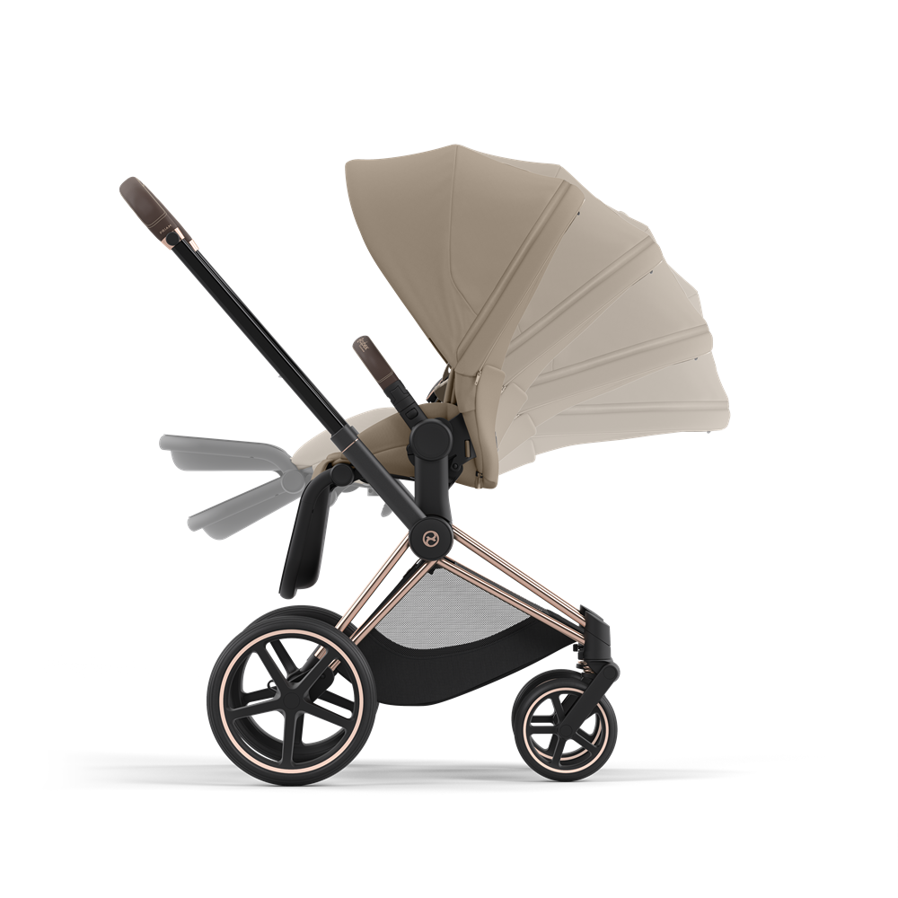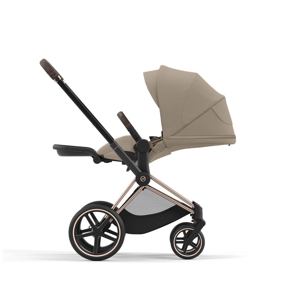 Cybex Priam 4.0 візочок у комплектації 2 в 1 Cozy Beige на шасі Rose Gold – це найновіша модель візочка Cybex Priam. Візочок Cybex Priam преміум класу, призначений для дітей від народження до 4 років. Виробник врахував побажання батьків та вдосконалив візок. Коляска стала вищою, попереду люльки з’явилася зручна кишенька на блискавці, оглядове віконце в нижній частині люльки повністю на блискавках, 5-ти точкові ремені в прогулянковому блоці регулюються набагато зручніше, змінилася форма підніжки в прогулянковому блоці, також змінився каптур у прогулянковому блоці. Оновлений візочок пропонує легке, компактне шасі та фантастичний комфорт із амортизаторами на всіх колесах. Cybex Priam – одна з найкращих колясок на сьогоднішній день, продумана до дрібниць і вражає стильним дизайном, функціональністю і бездоганною німецькою якістю.
