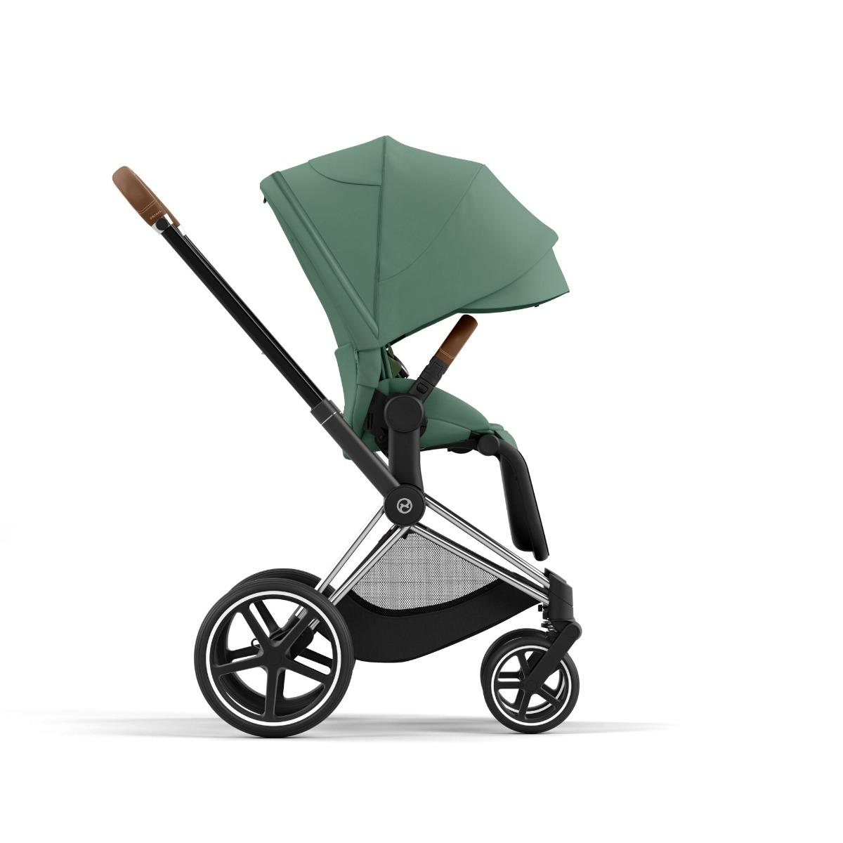 Cybex Priam 4.0 візочок у комплектації 2 в 1 Leaf Green на шасі Chrome Brown – це найновіша модель візочка Cybex Priam. Візочок Cybex Priam преміум класу, призначений для дітей від народження до 4 років. Виробник врахував побажання батьків та вдосконалив візок. Коляска стала вищою, попереду люльки з’явилася зручна кишенька на блискавці, оглядове віконце в нижній частині люльки повністю на блискавках, 5-ти точкові ремені в прогулянковому блоці регулюються набагато зручніше, змінилася форма підніжки в прогулянковому блоці, також змінився каптур у прогулянковому блоці. Оновлений візочок пропонує легке, компактне шасі та фантастичний комфорт із амортизаторами на всіх колесах. Cybex Priam – одна з найкращих колясок на сьогоднішній день, продумана до дрібниць і вражає стильним дизайном, функціональністю і бездоганною німецькою якістю.