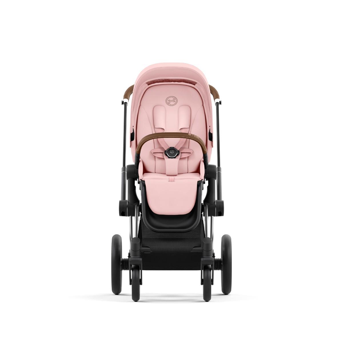 Cybex Priam 4.0 візочок у комплектації 2 в 1 Peach Pink на шасі Chrome Brown – це найновіша модель візочка Cybex Priam. Візочок Cybex Priam преміум класу, призначений для дітей від народження до 4 років. Виробник врахував побажання батьків та вдосконалив візок. Коляска стала вищою, попереду люльки з’явилася зручна кишенька на блискавці, оглядове віконце в нижній частині люльки повністю на блискавках, 5-ти точкові ремені в прогулянковому блоці регулюються набагато зручніше, змінилася форма підніжки в прогулянковому блоці, також змінився каптур у прогулянковому блоці. Оновлений візочок пропонує легке, компактне шасі та фантастичний комфорт із амортизаторами на всіх колесах. Cybex Priam – одна з найкращих колясок на сьогоднішній день, продумана до дрібниць і вражає стильним дизайном, функціональністю і бездоганною німецькою якістю.