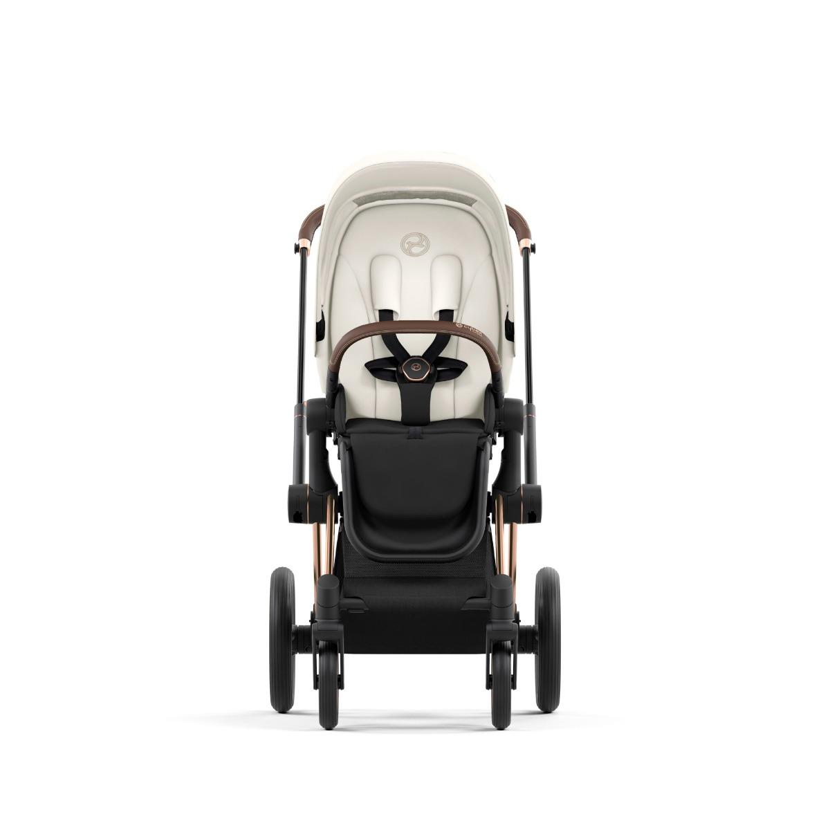 Cybex Priam 4.0 візочок у комплектації 2 в 1 Off White на шасі Rose Gold – це найновіша модель візочка Cybex Priam. Візочок Cybex Priam преміум класу, призначений для дітей від народження до 4 років. Виробник врахував побажання батьків та вдосконалив візок. Коляска стала вищою, попереду люльки з’явилася зручна кишенька на блискавці, оглядове віконце в нижній частині люльки повністю на блискавках, 5-ти точкові ремені в прогулянковому блоці регулюються набагато зручніше, змінилася форма підніжки в прогулянковому блоці, також змінився каптур у прогулянковому блоці. Оновлений візочок пропонує легке, компактне шасі та фантастичний комфорт із амортизаторами на всіх колесах. Cybex Priam – одна з найкращих колясок на сьогоднішній день, продумана до дрібниць і вражає стильним дизайном, функціональністю і бездоганною німецькою якістю.