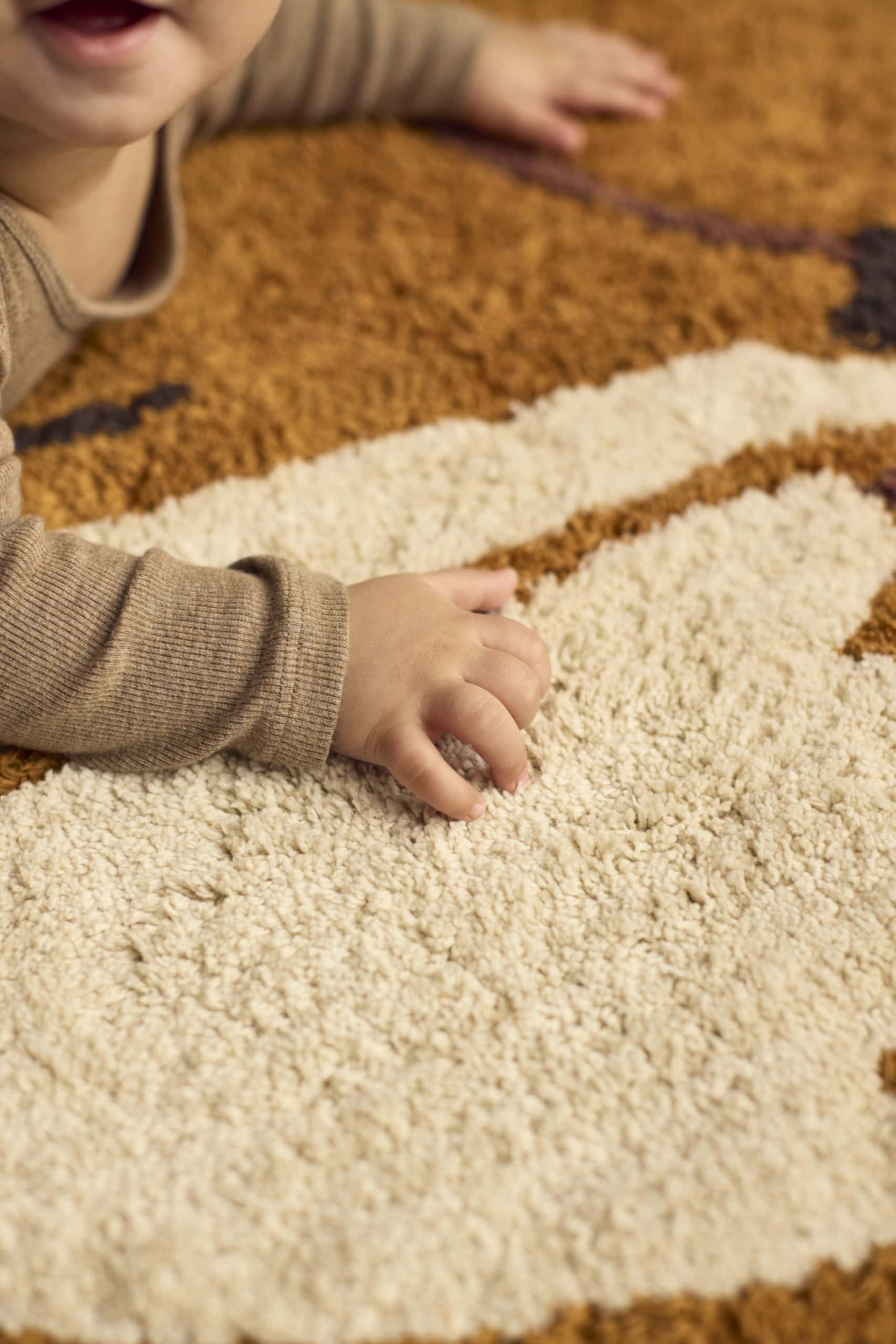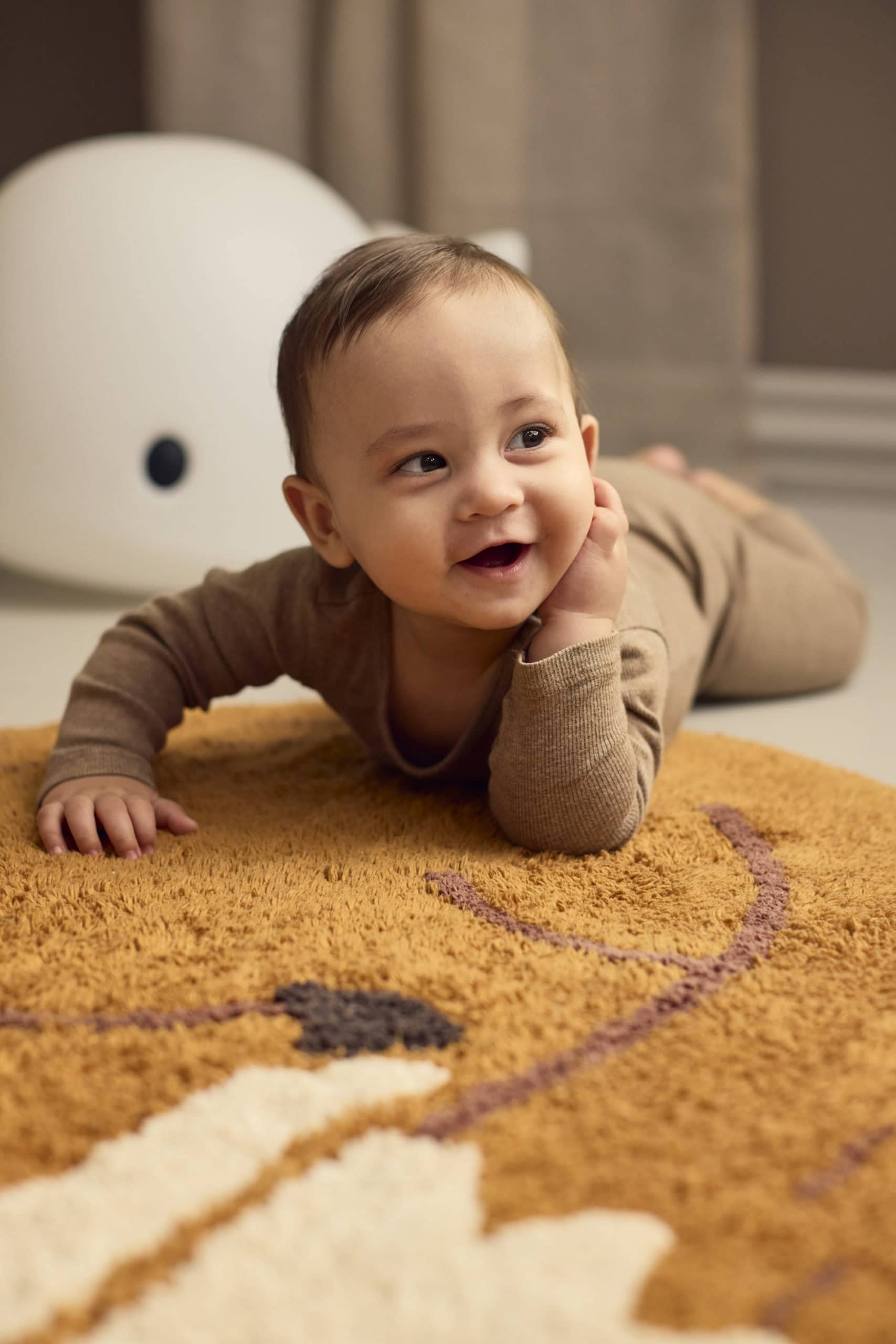 Килим — це справжнє втілення затишку та казкового настрою в дитячій кімнаті. Його милий дизайн одразу привертає увагу та створює атмосферу тепла, де кожен малюк відчуває себе комфортно й безпечно. Ніжні кольори гармонійно доповнюють інтер’єр, а приємна на дотик поверхня дарує відчуття м’якості під час ігор і відпочинку.