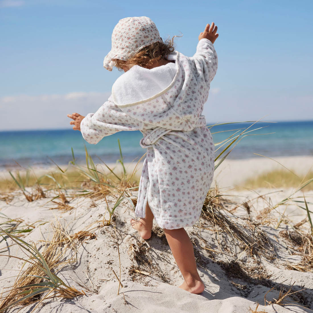 М’який махровий хадат від бренду Elodie дуже затишний і гарно вбирає вологу. Виготовлений із високоякісної бавовняної махрової тканини. Зручно використовувати вдома після ванних процедур, при поодах у басейн чи на відпочинку біля моря. Має універсальний розмір, який підійде на вік 1-3 рочки.