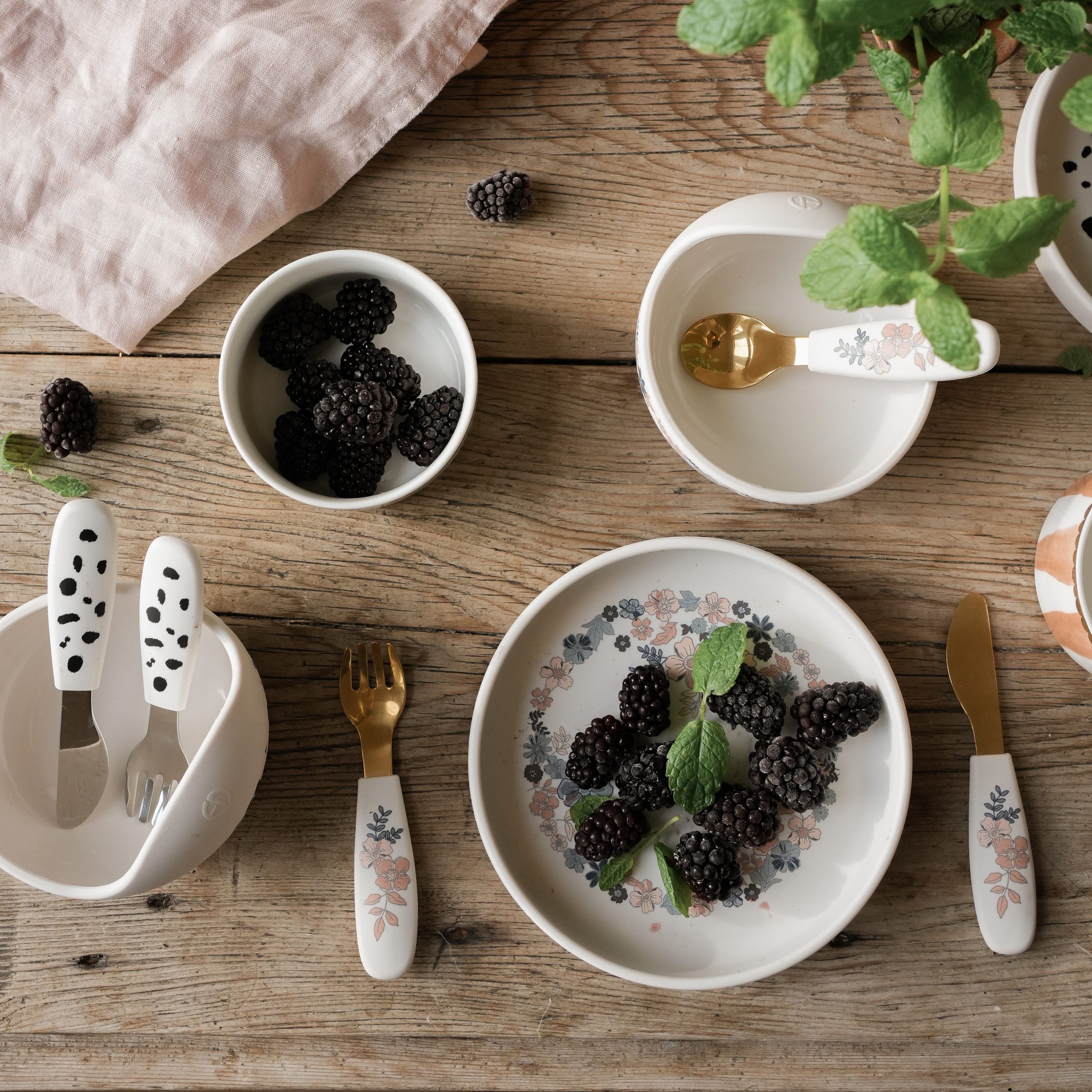 У комплект входить: пласка тарілка, навчальний ніж і виделка.
