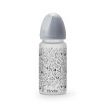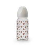 Екологічно чиста скляна пляшечка для годування Elodie з термостійкого скла із силіконовим покриттям для ще більшого захисту від ударів і для зручності годування. Зверніть увагу, що скло – це найбезпечніший матеріал для годування вашої малечки, адже навіть при нагріванні рідини у пляшечці навіть до дуже високих температур, скло не виділє токсичні речовини.