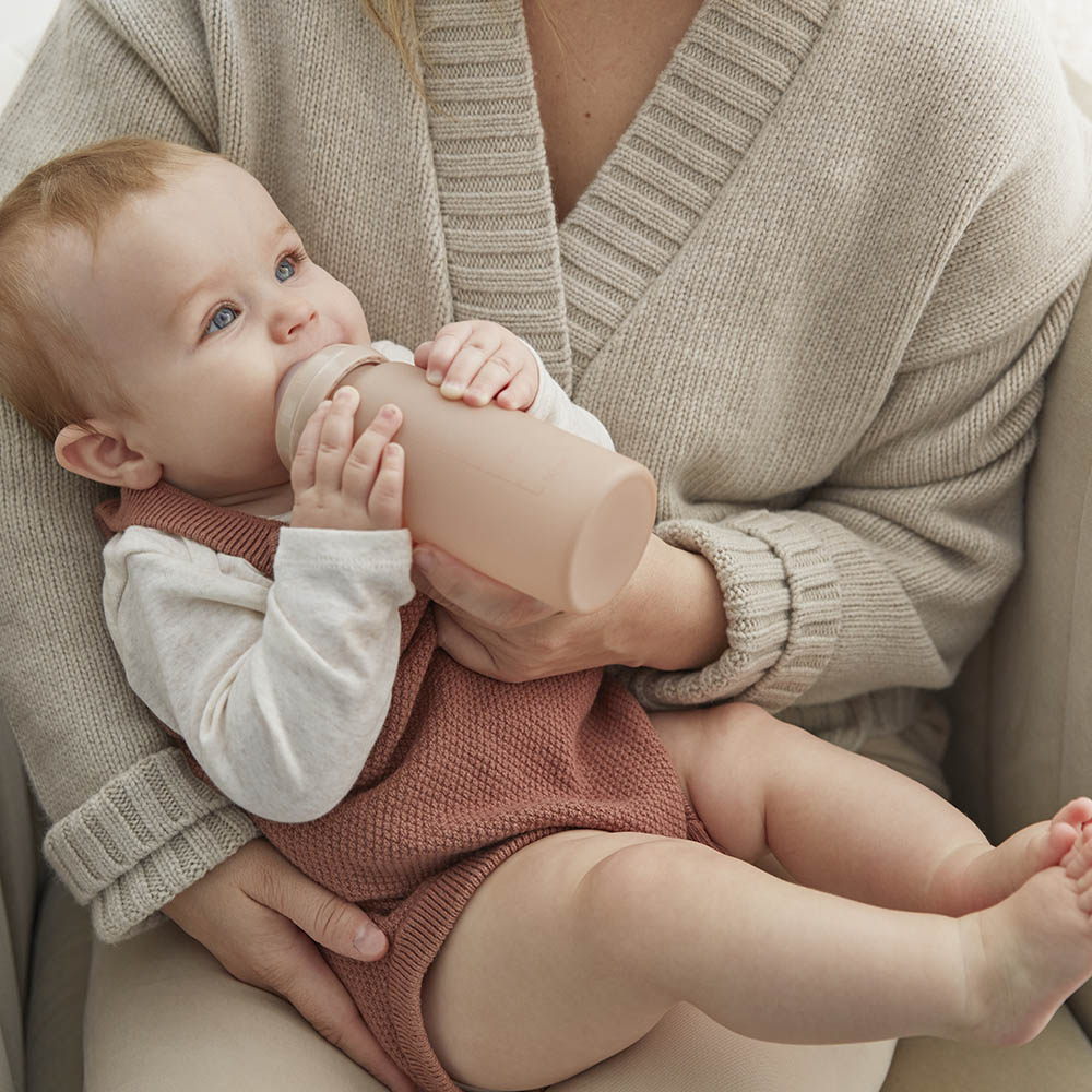 Екологічно чиста скляна пляшечка для годування Elodie з термостійкого скла із силіконовим покриттям для ще більшого захисту від ударів і для зручності годування. Зверніть увагу, що скло – це найбезпечніший матеріал для годування вашої малечки, адже навіть при нагріванні рідини у пляшечці навіть до дуже високих температур, скло не виділє токсичні речовини.