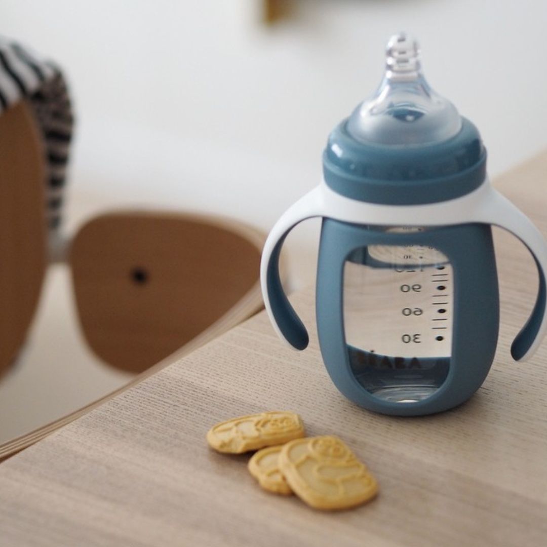 Поїльник скляний Beaba навчає дитинку від 4 місяців пити самостійно. Він ідеально підходить для використання вдома і на вулиці. Простий у використанні і виготовлений із екологічних матеріалів, має мірну шкалу.