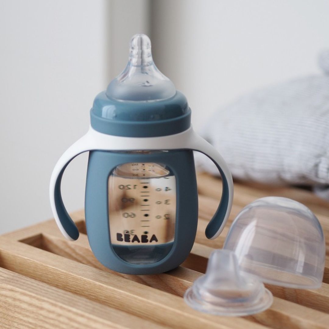 Поїльник скляний навчальний Beaba 2 в 1 – блакитний