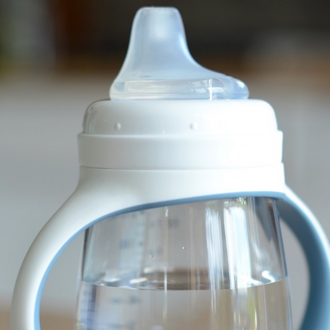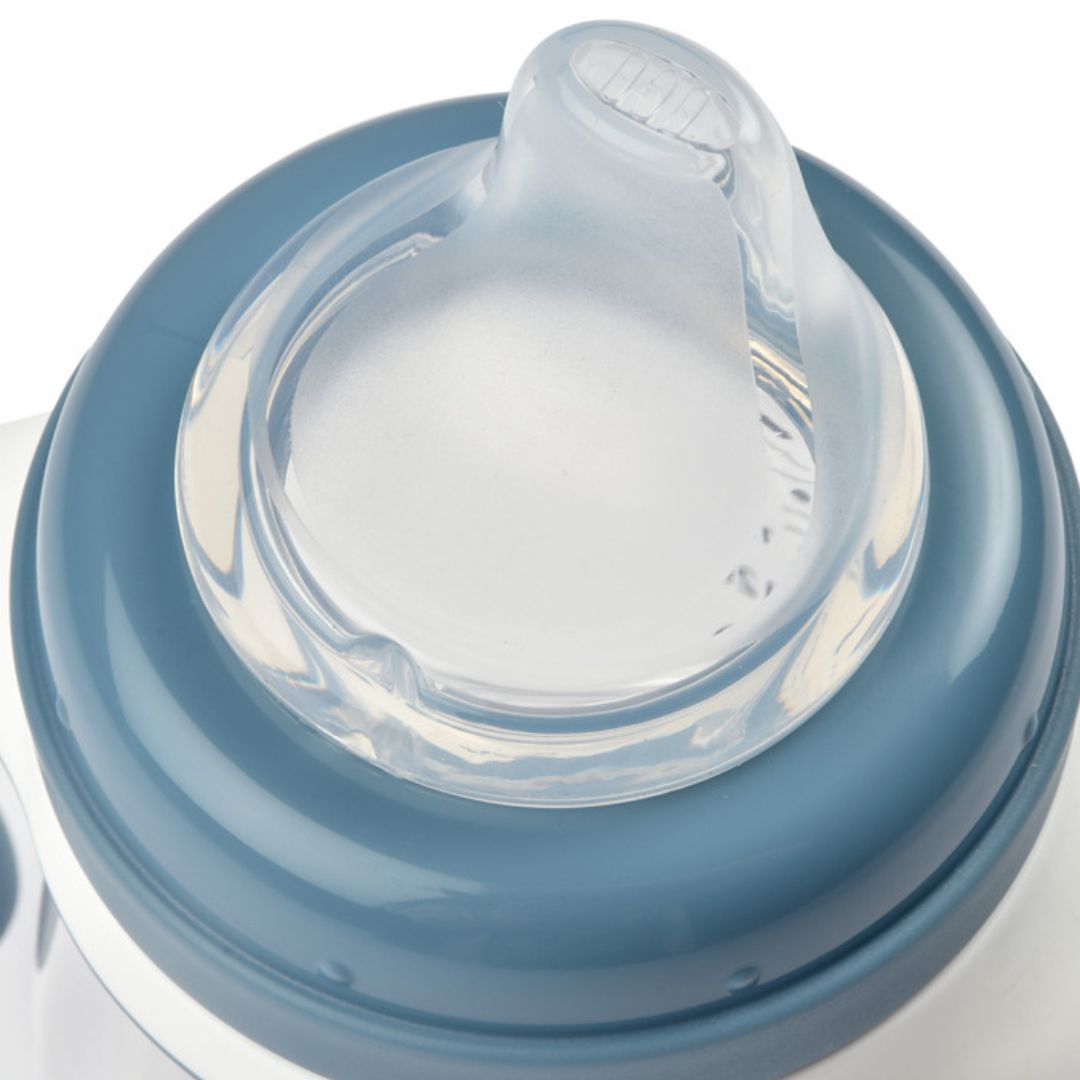 У комплектація входять дві змінні насадки: соска – для найменших, носик – для того щоб малеча навчалась пити як із чашечки.