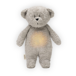 Завдяки природним шумам, ведмедик допомагає малечі швидше заспокоїтися і заснути. Тому таку іграшку можна брати із собою на прогулянку, у поїздку чи будь-куди і вашій дитинці буде знайомо і спокійно засинати. Уже науково доведено як білі шуми позитивно впливають на психіку дитинки і допомагають адаптуватися до навколишнього світу. У ведмедика є такі зкуки: шум вітру, утроби матері, звук лісу, дощ, навіть шум хвиль моря. Також можна увімкнути ніжну колискову. Регуюється навіть інтенсивність звуку.