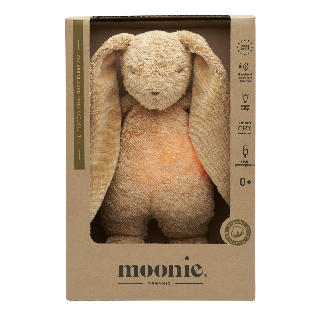 Співаючий зайчик Moonie із колекції Organic подарує малечці затишок і спокійний сон будь-де. Він виготовлений із сертифікованої органічної бавовни, тому дуже ніжний і безпечний навіть для новонароджених.