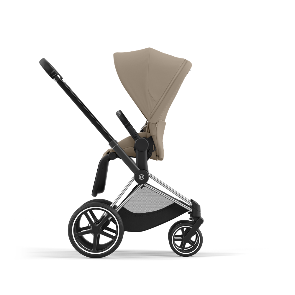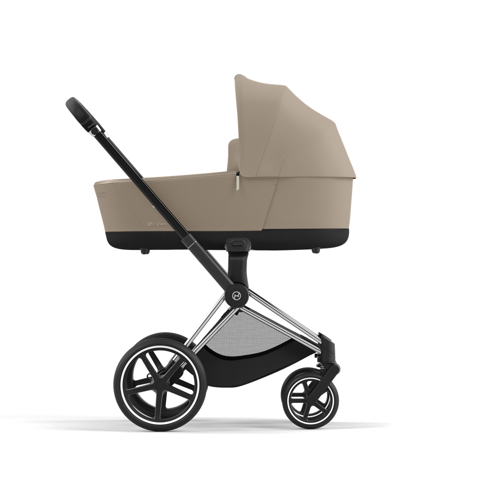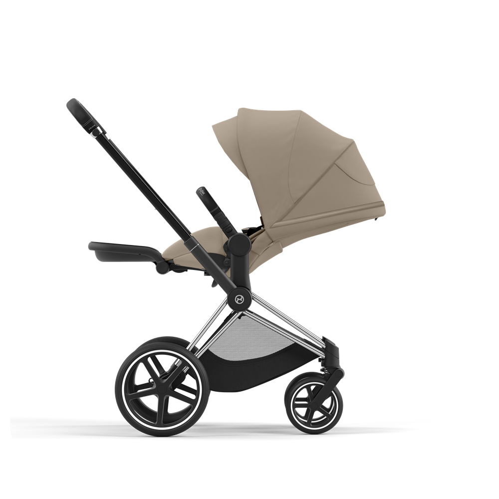 Cybex Priam 4.0 візочок у комплектації 2 в 1 Cozy Beige на шасі Chrome Black – це найновіша модель візочка Cybex Priam. Візочок Cybex Priam преміум класу, призначений для дітей від народження до 4 років. Виробник врахував побажання батьків та вдосконалив візок. Коляска стала вищою, попереду люльки з’явилася зручна кишенька на блискавці, оглядове віконце в нижній частині люльки повністю на блискавках, 5-ти точкові ремені в прогулянковому блоці регулюються набагато зручніше, змінилася форма підніжки в прогулянковому блоці, також змінився каптур у прогулянковому блоці. Оновлений візочок пропонує легке, компактне шасі та фантастичний комфорт із амортизаторами на всіх колесах. Cybex Priam – одна з найкращих колясок на сьогоднішній день, продумана до дрібниць і вражає стильним дизайном, функціональністю і бездоганною німецькою якістю.